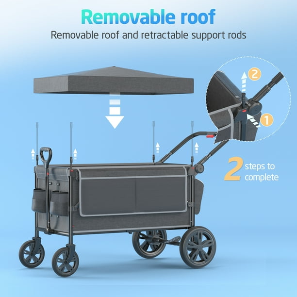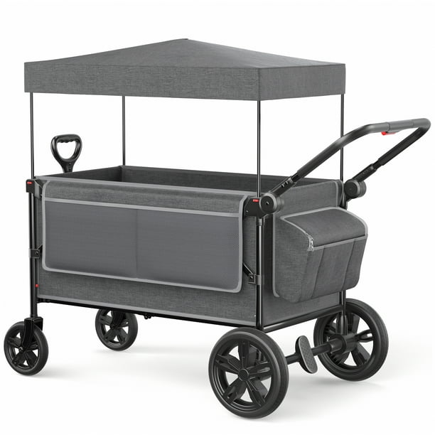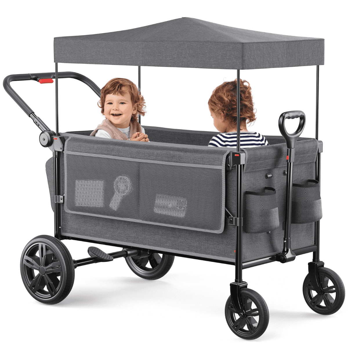 SACVON All-Terrain Stroller Wagon for Toddlers with Canopy, Parent Organizer, Adjustable Handlebar, 2 Cup Holders