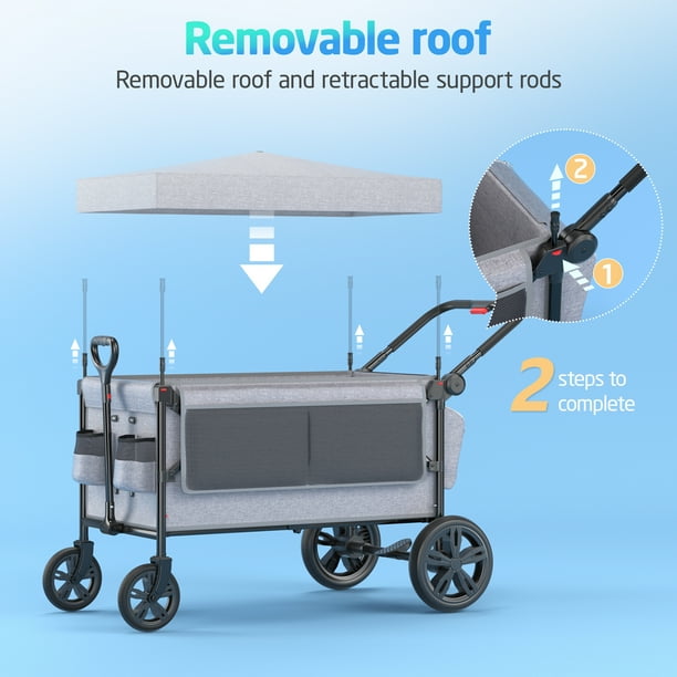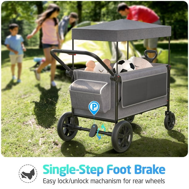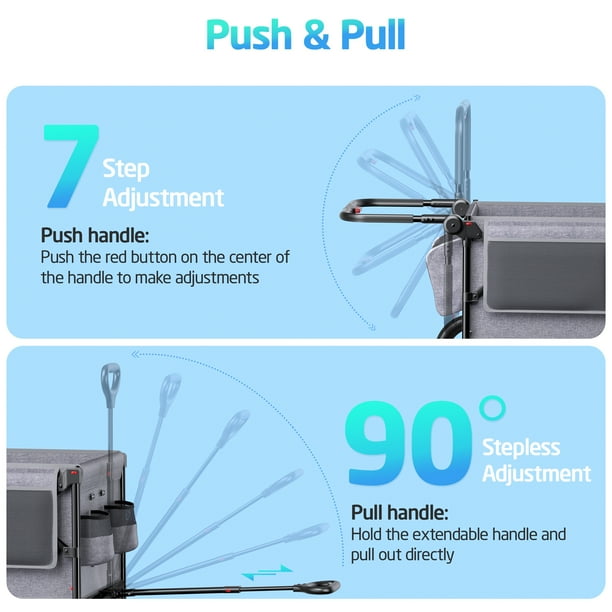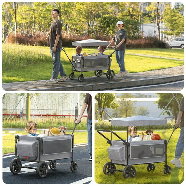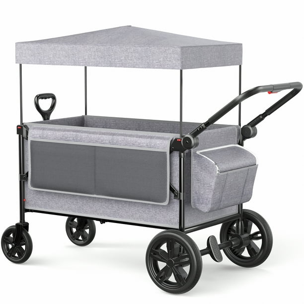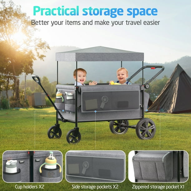 SACVON All-Terrain Stroller Wagon for Toddlers with Canopy, Parent Organizer, Adjustable Handlebar, 2 Cup Holders