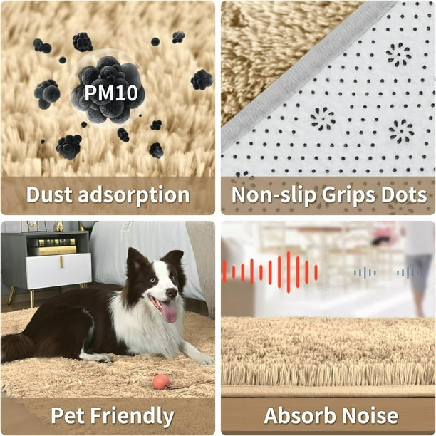 Sanmadrola Area Rug for Bedroom,4’X5.2′,Fluffy Shag Rug for Living Room,Furry Carpet for Kids Room,Shaggy Throw Rug for Nursery Room,Fuzzy Plush Rug,Khaki Carpet,Rectangle,Cute…