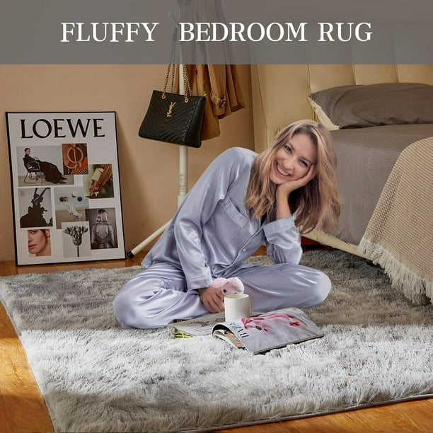 Sanmadrola Gray Area Rug for Bedroom,4’X5.2′,Fluffy Shag Rug for Living Room,Furry Carpet Kids Room,Shaggy Throw Rug for Nursery Room,Fuzzy Plush Rug,Grey Carpet,Rectangle,Cute…