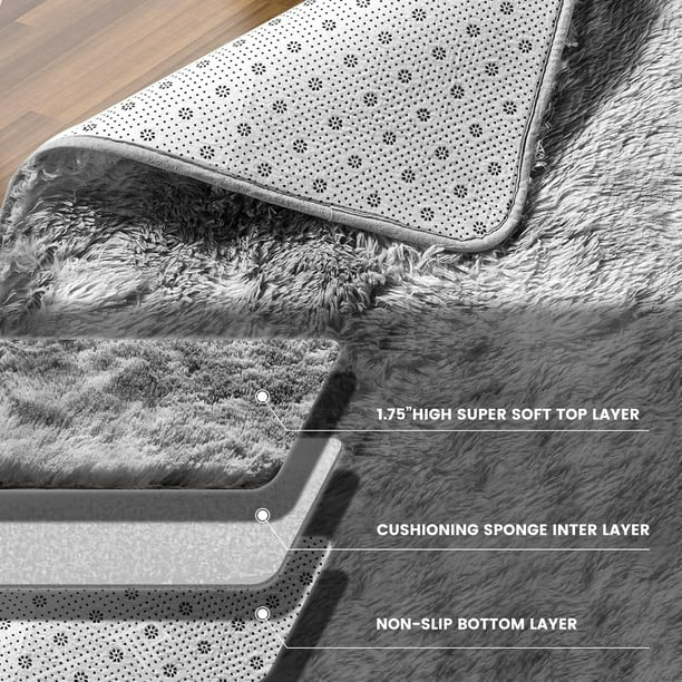 Higher-density faux fur— Feature 1.57″, 430 GSM High-density shag carpet surface, the soft area rug is incredibly soft and comfortable. No more shedding carpet fibers!