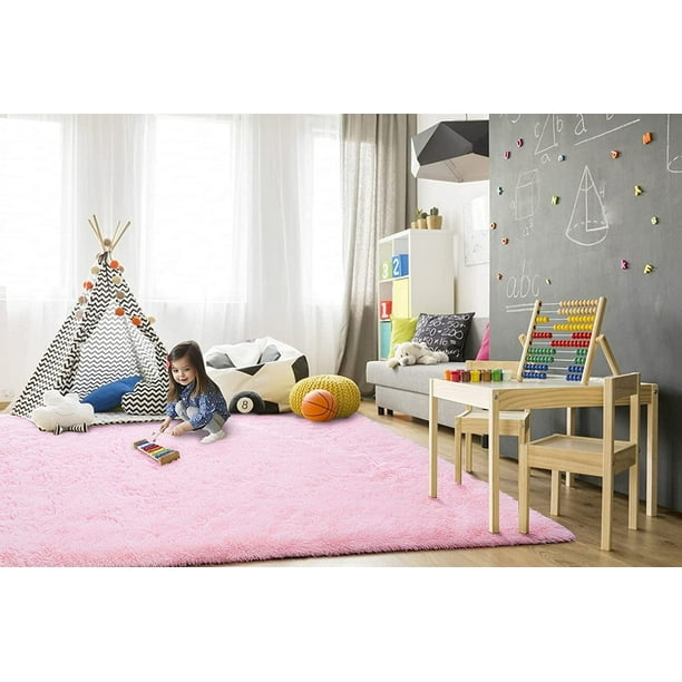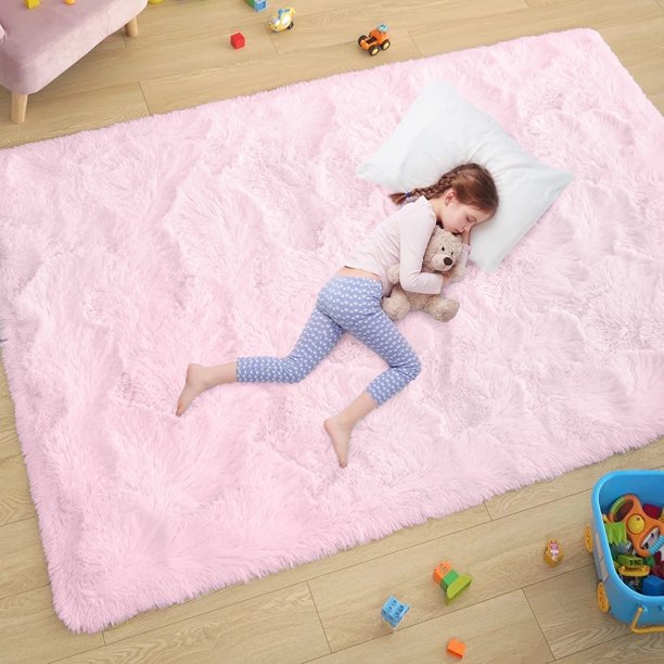 Sanmadrola Super Soft Shaggy Rugs Carpets 2.4×5.2 Feet Plush Area Rugs for Living Room Bedroom, Fluffy ​Rug for Nursery Playroom Dorm Room, Shag Plush Rug for Teen Room Decor, Pink