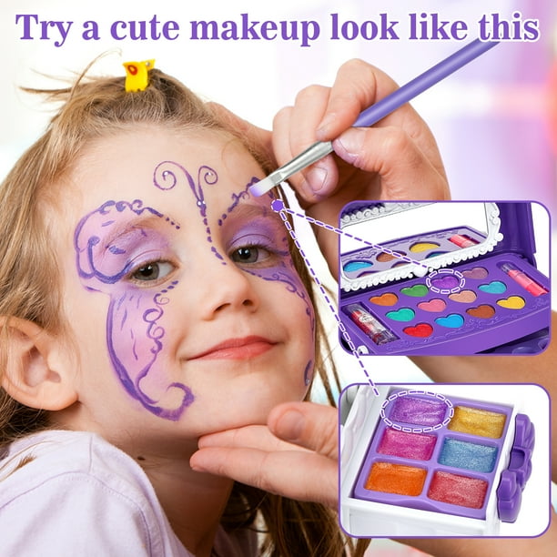 - PERFECT SIZE: Specially designed for little girls, this small makeup case is very cute and portable. It allows kids to take her makeup case with them anywhere they want to play. Meanwhile, the push-pull makeup palette will bring more surprises to your little princess.