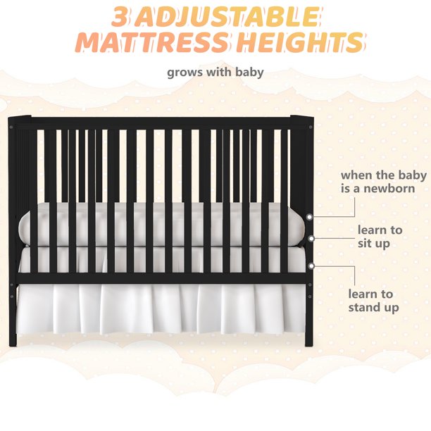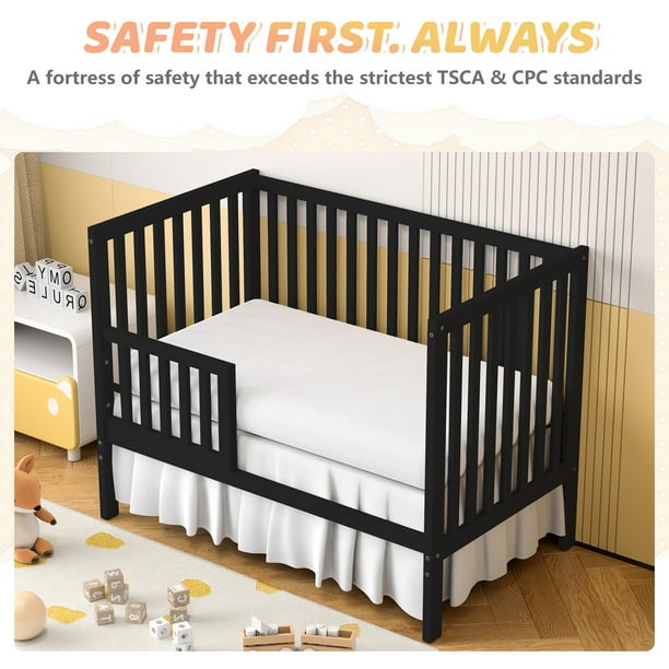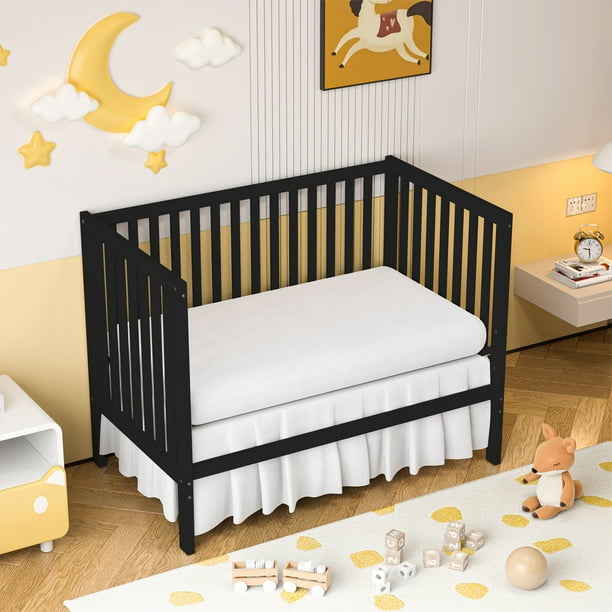 SESSLIFE 5-In-1 Convertible Crib, Black Baby Bed, Converts from Baby Crib to Toddler Bed, Fits Standard Full-Size Crib Mattress(Not Included)