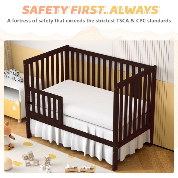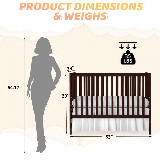 SESSLIFE 5-In-1 Convertible Crib, Espresso Baby Bed, Converts from Baby Crib to Toddler Bed, Fits Standard Full-Size Crib Mattress(Not Included)