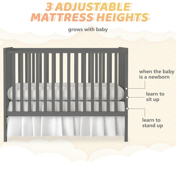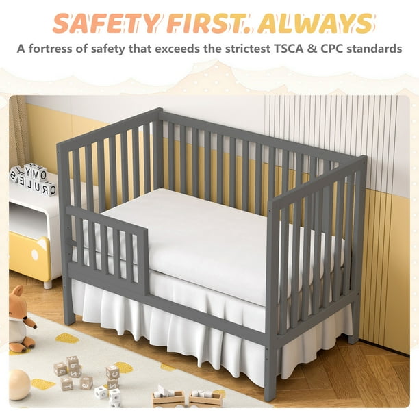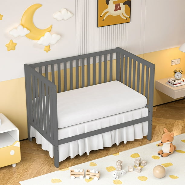 SESSLIFE 5-In-1 Convertible Crib, Gray Baby Bed, Converts from Baby Crib to Toddler Bed, Fits Standard Full-Size Crib Mattress(Not Included)