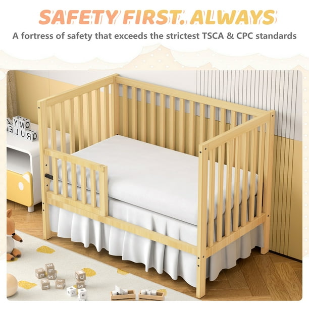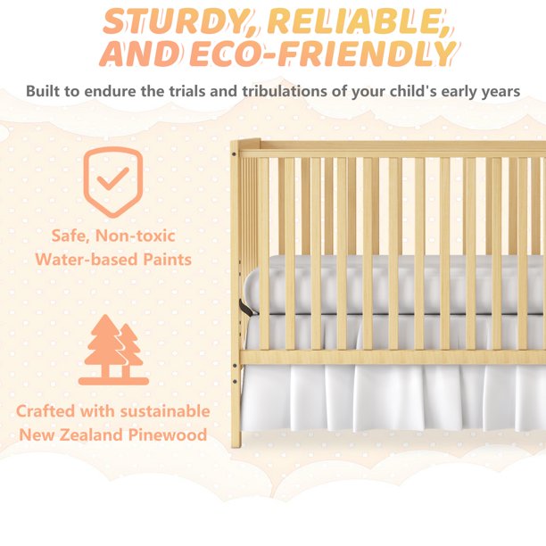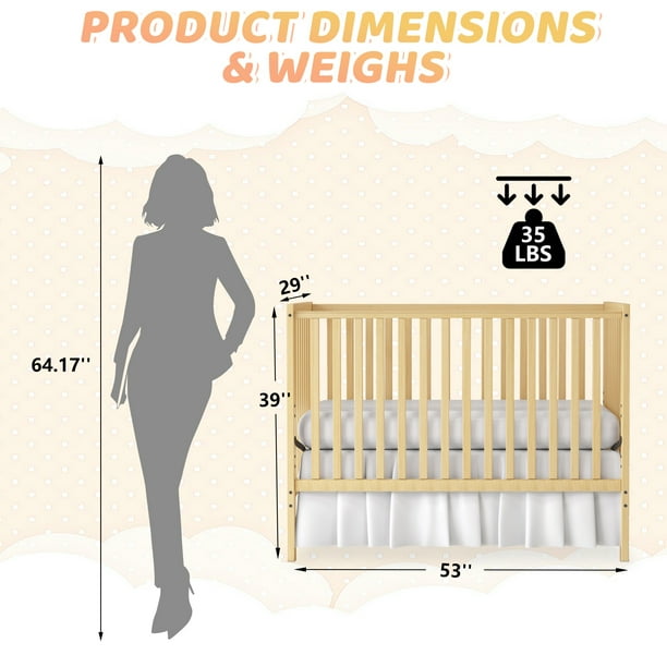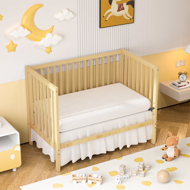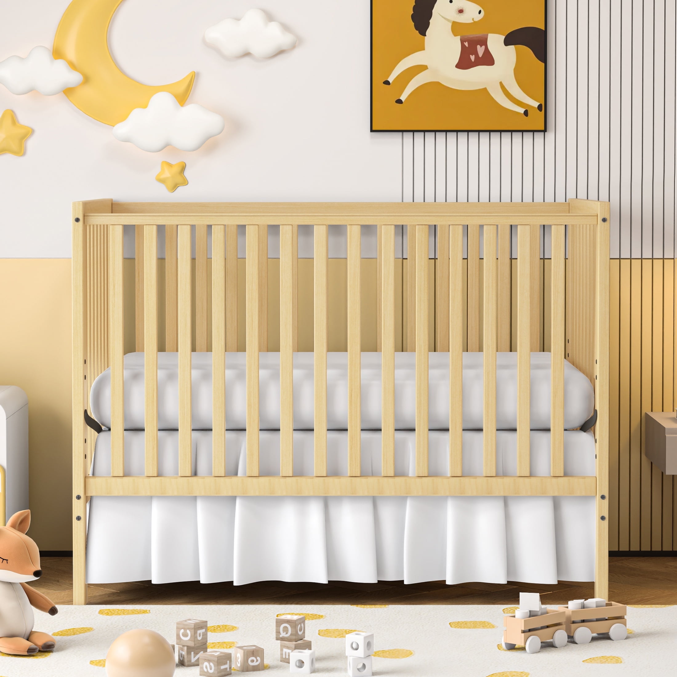 SESSLIFE 5-In-1 Convertible Crib, Natural Baby Bed, Converts from Baby Crib to Toddler Bed, Fits Standard Full-Size Crib Mattress(Not Included)