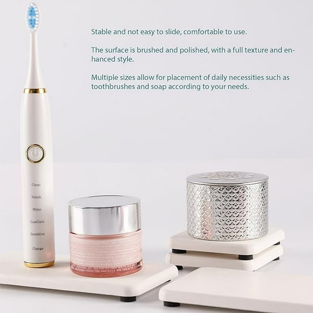 Made from natural Diatom mud and plant fiber, small holes within diatomite enable it have amazing water absorption. They could absorb water and gets dry in a few minutes. It makes the Bathroom Counter top more dry and tidy. Silicone footpads boost the slip-resistance of coasters while keeping them out of the bathroom vanity. This design improves the contact surface between the diatomaceous earth coaster and the air, accelerate moisture evaporation, and prolongs the service life of the product. Suitable to be used as absorbent mats for soaps / cups / soap bottle / dish sponge / make-up bottles, and anywhere you need to absorb water quickly and keep the table / countertop surface dry.Perfect Design Created for the Modern Home, to make life clean, comfortable and orderly. This product should be cleaned and air-dried regularly, If not cleaned, the use effect of the product will be affected!Dust can be washed directly with clean water or wiped with wet cloth and dried, clean stubborn stain with detergent, or the stains can be removed by gently grinding the surface with sandpaper.