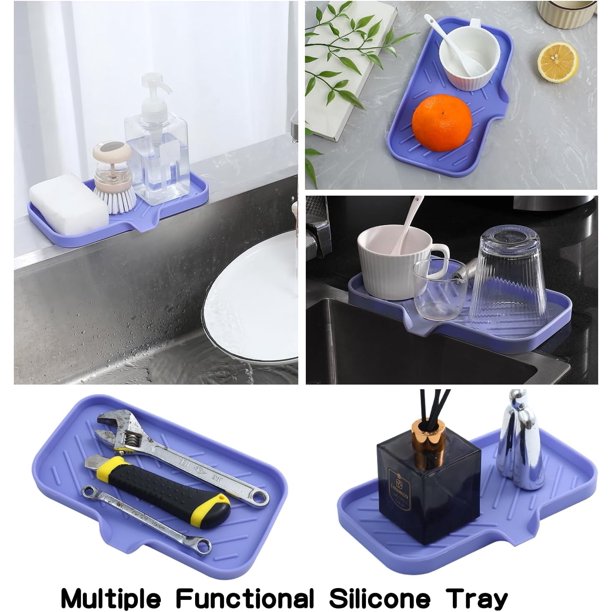 NOTE: Keep away from Sharp items or Flames Silicone Sink Soap Dishesfor Multiple Usagesoap dish is made of food-grade silicone without BPA, which is softer, waterproof, heat-resistant.the soap holder is the perfect addition to any bathroom or kitchen. Its non-slip design ensures your soap stays in place while its drainage holes prevent water buildup.There is enough space of the silicone trayto store small items such as dish soap dispenser, scrubbers, dispenser, et
