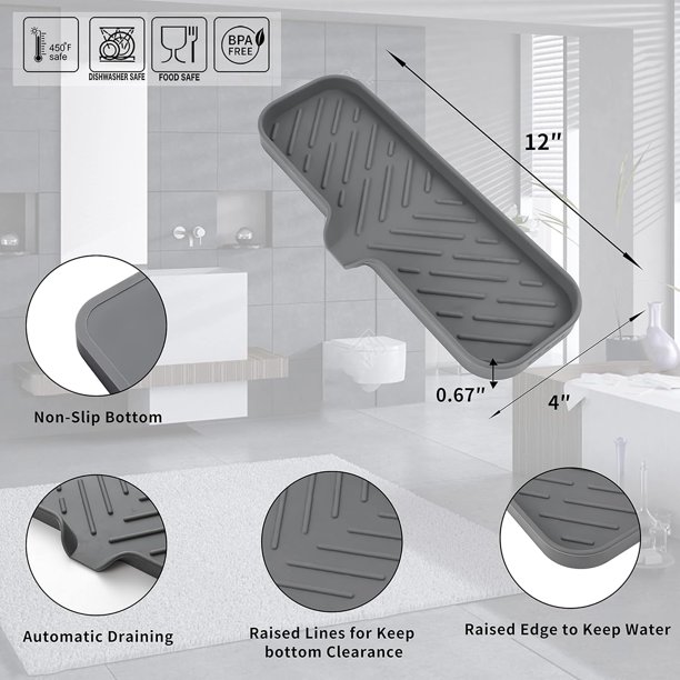 • Food Grade Silicone: The soap dispenser tray is made from high-quality food grade silicone, so it’s safe for use in the kitchen or bathroom