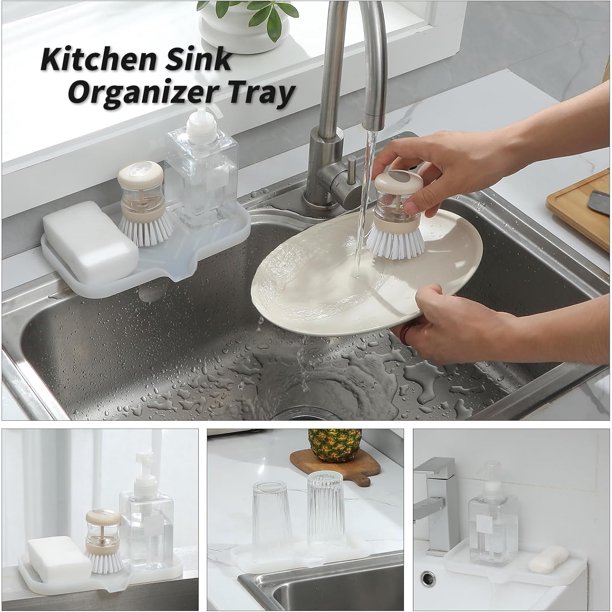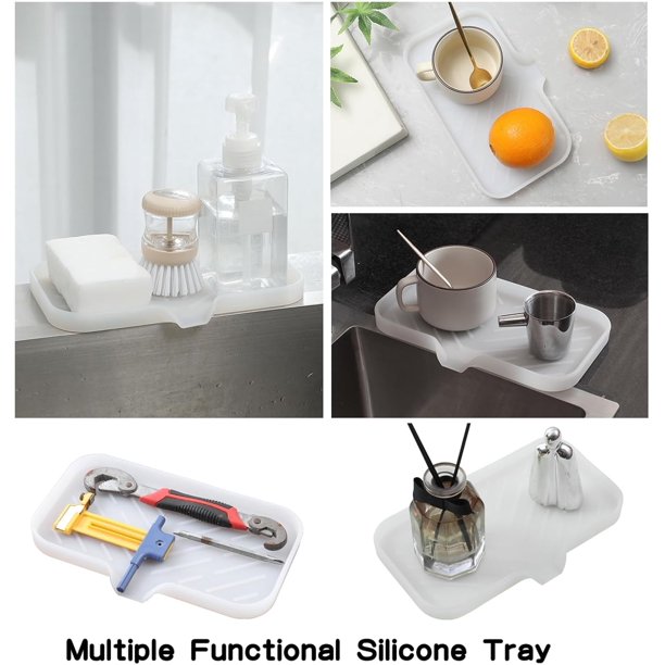 NOTE: Keep away from Sharp items or Flames Silicone Sink Soap Dishesfor Multiple Usagesoap dish is made of food-grade silicone without BPA, which is softer, waterproof, heat-resistant.the soap holder is the perfect addition to any bathroom or kitchen. Its non-slip design ensures your soap stays in place while its drainage holes prevent water buildup.There is enough space of the silicone trayto store small items such as dish soap dispenser, scrubbers, dispenser, et