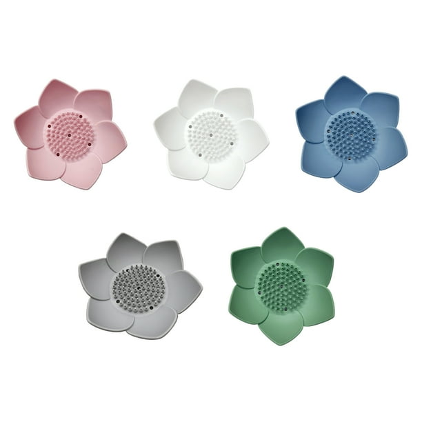 Silicone Soap Dishes with Draining – Lotus Shaped Bathroom Bar Soap Holder for Shower – Soap Tray for Kitchen Sink – Floral Shape Soap Saver for Counter Bathtub(1/4 Pack)