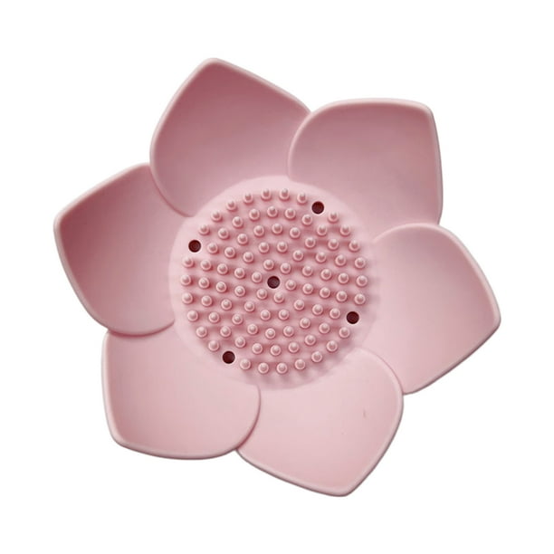 Silicone Soap Dishes with Draining – Lotus Shaped Bathroom Bar Soap Holder for Shower – Soap Tray for Kitchen Sink – Floral Shape Soap Saver for Counter Bathtub(1/4 Pack)