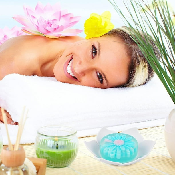 Silicone Soap Dishes with Draining – Lotus Shaped Bathroom Bar Soap Holder for Shower – Soap Tray for Kitchen Sink – Floral Shape Soap Saver for Counter Bathtub(1/4 Pack)