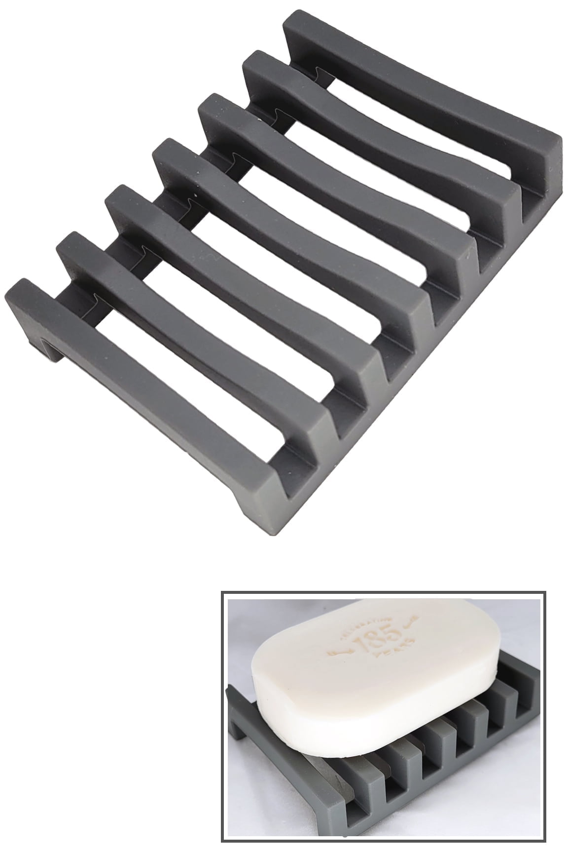 Simply Good Silicone Soap Dish With Auto-Drain Open Base – Max Airflow Soap Holder – GRAY