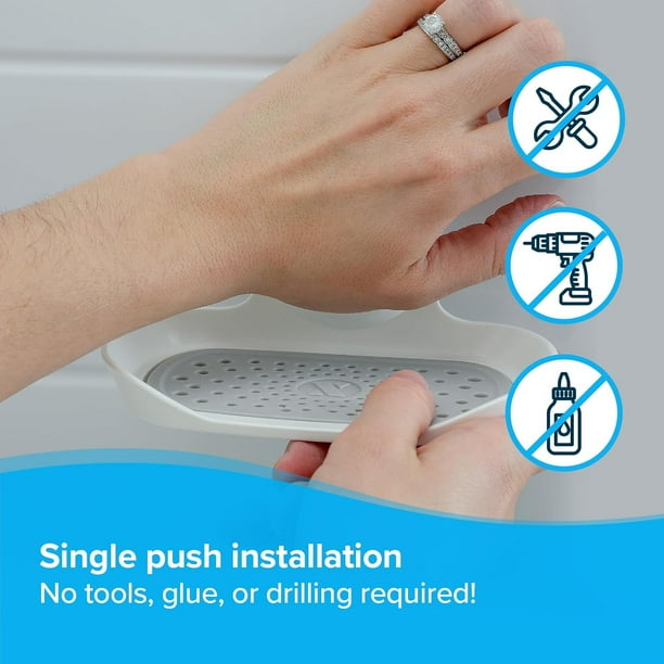 • Strong Hold Suction: Holds up to 11 pounds! Made of durable, rustproof plastic, this unique soap saver dish will last for years. Push-lock suction holds tight to smooth surfaces in your bathroom or kitchen.