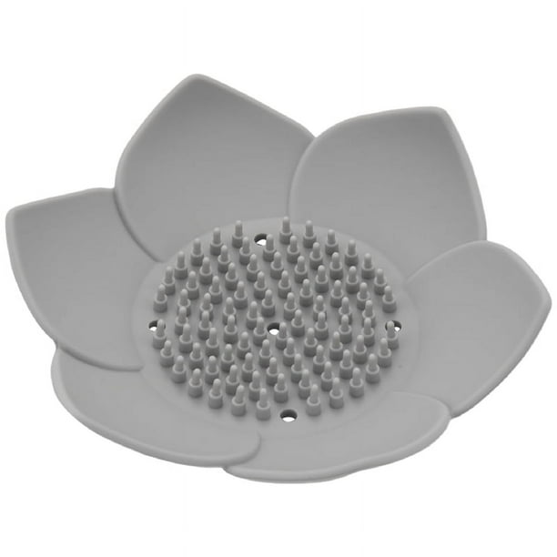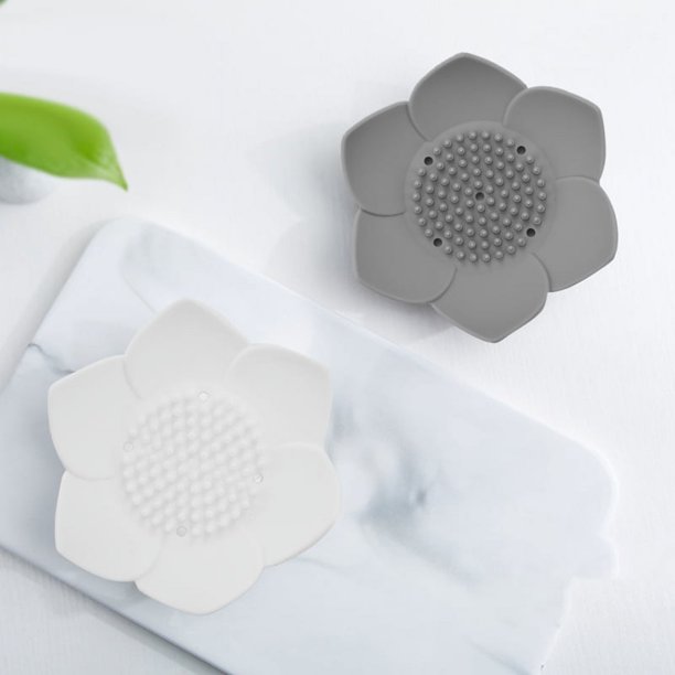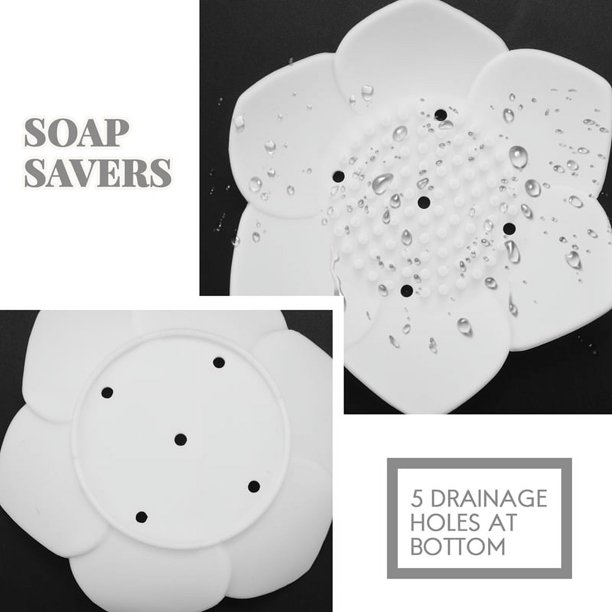 - Raised bumps design and 5 drainage holes at bottom draw excess water from soap and keeps the soap elevate. The petal-shaped design prevents the soap from slipping off the soap tray.