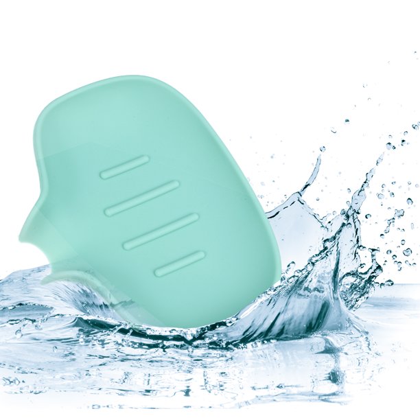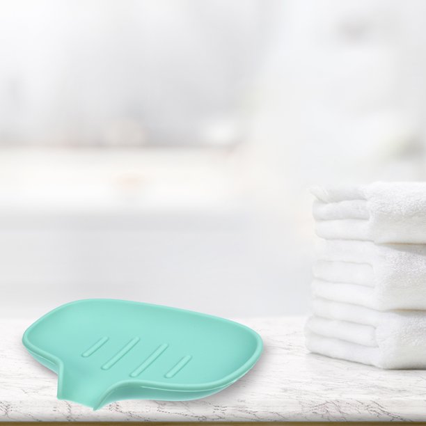 • Soap Dish Soap Cleaning Storage Keep Soap Dry for Home Bathroom Kitchen Silicone Green 14.5×11.3cm
