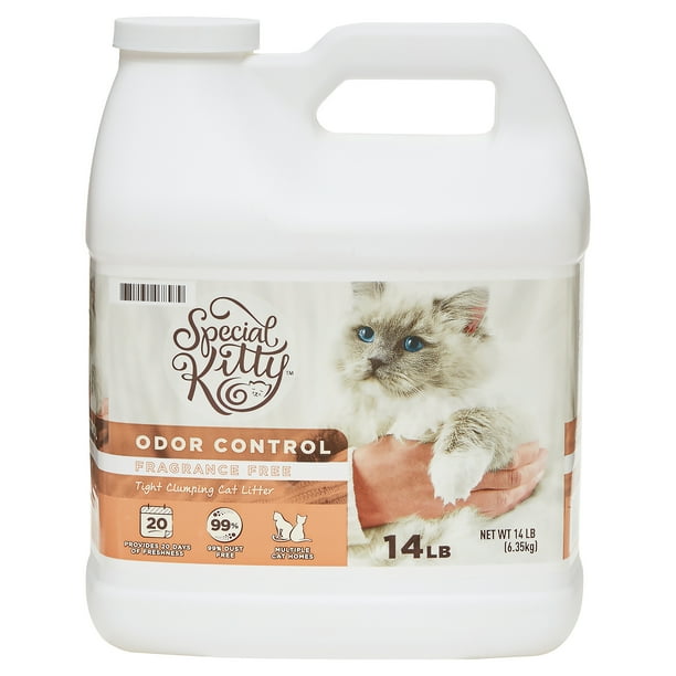 • Special Kitty Scoopable Tight Clumping Cat Litter, Fragrance Free, 14 lb:Long-lasting fragrance-free odor control to keep your home smelling fresh99% dust free for a cleaner pourThe litter’s tight clumping formula makes scooping your cat’s box a breezeGreat for multiple cats14-pound jug includes a handle for convenient maneuverability and easy pouringthe see-through build helps you know when it’s time to pick up some more