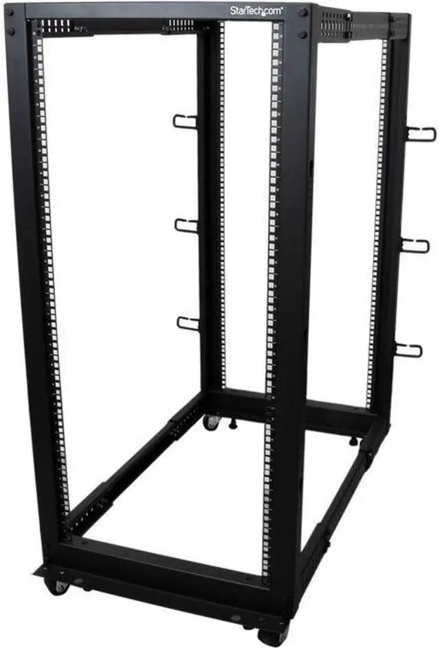 StarTech.com 4POSTRACK25U 25U Adjustable Depth Open Frame 4 Post Server Rack Cabinet – w/ Casters / Levelers and Cable Management Hooks – Pappy Mall