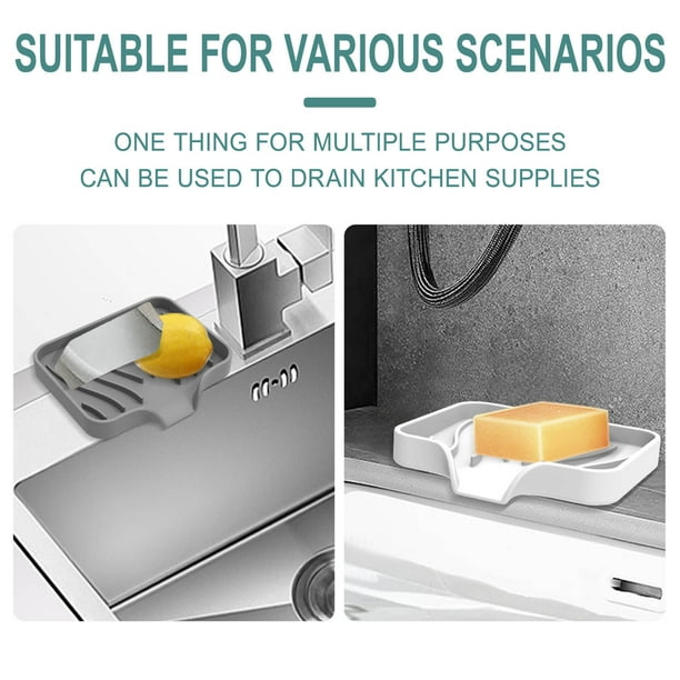 - Kitchen Sink Organizer Sponge Holder: Silicone sponge holder for kitchen sink can be used to store kitchen sink or bathroom accessories such as sponges, bar soap, dish brush, scrubber, dish soap dispenser, etc. Size: 12x10x1.7 cm/4.7×3.9×0.7 inch