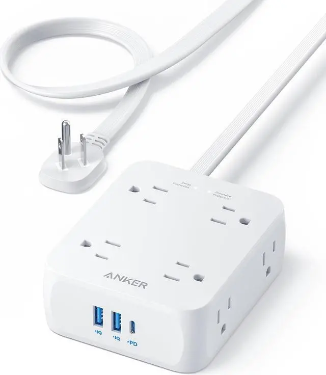 Surge Protector Flat Plug Power Strip 2000J, Anker 5ft Thin Extension Cord with 8 Outlets, 2 USB A and 1 USB C Port, 20W for iPhone15, Wall Mount, – Pappy Mall