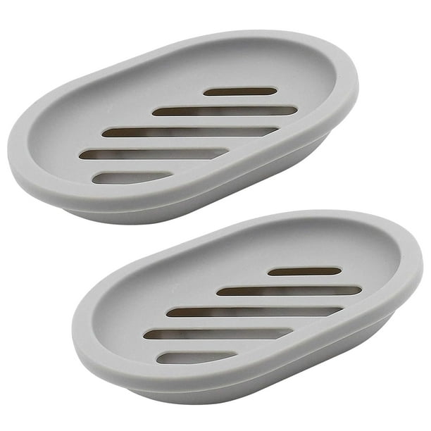 Syenll 2 Pack Soap Dish with Drain, Double Layer Plastic Draining Soap Holder for Bathroom Shower Kitchen (Gray)