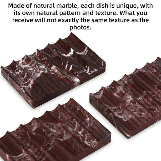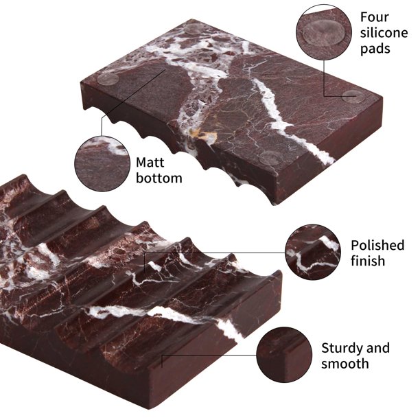 TABHOUKIT Luxury Marble Soap Dish Tray,Rectangle Stone Marble Soap Tray,Self Draining Soap Holder for Bathroom, Kitchen (Rosso Lepanto)