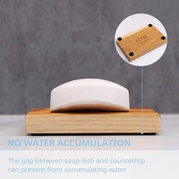 Teak soap Dish for Shower by HTB, Wood Decorative Bath soap Holder Heightened Base Design to Keep Soap Dry in Kitchen, Bathroom, Sink, Bathtub, Cute Wooden soap Saver for Hand…