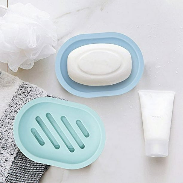 TiokMc 2 Pcs Draining Soap Dish – Bar Soap Holder, Soap Saver for Bathroom and Shower, Durable ABS Plastic, Blue