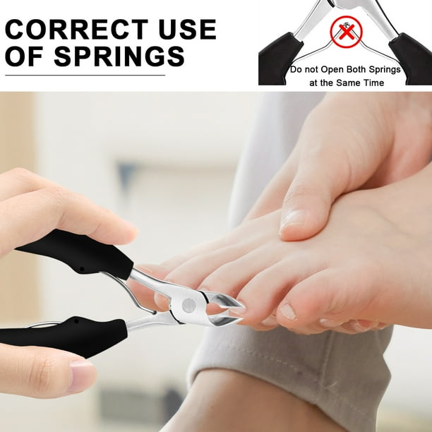 Podiatrist Toenail Clippers: New sharp curved blade specially designs for ingrown & thick nails to make it easy to cut. Sharp & Durable: Podiatrist professional toenail clippers are made of high quality surgical grade stainless steel for rust and durability. Upgraded Double Spring: Upgraded no spring or single spring to double spring for long-lasting use. Extend its service life. Updated Handle Nail Nipper: made with ABS material that is non-slip & softer, use an ergonomic handle for comfort, firm grip & easy cutting.