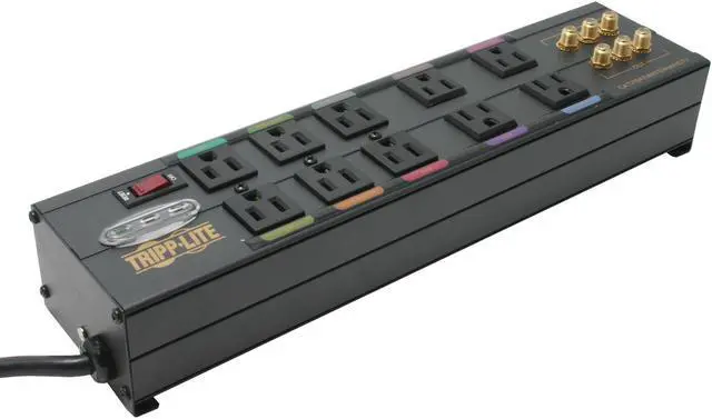 Tripp Lite HT10DBS Isobar 10-Outlet Home/Business Theater Surge Protector, 8 ft. Cord with Right-Angle Plug, 3840 Joules, LEDs, Metal Housing – Pappy Mall