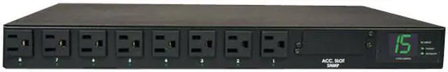 120V 15A metered PDU system with Automatic Transfer Switch (ATS)Dual input cords ,one attached (primary) and one optional-use detachable cord (secondary)Included cordsets support 5-15P plug-in connectionFront panel digital ammeter displays power consumption in amps8 built-in NEMA 5-15R output receptaclesOptional ATS function enables setup for hot-swappable UPS maintenance bypass ,dual UPS protection or dual AC input redundancy for critical single-corded network hardware (ATS function requires the use of a full time sine wave online UPS ,like Tripp Lite's SmartOnline series)ATS functionality is supported by any two 120V AC power sources ,regardless of phase angle ,to offer support for a variety of unique redundant power applicationsSuper-fast switchover between primary and secondary power sources occurs within 2-7 millisecondsBuilt-in card slot supports optional SNMPWEBCARD for permanent upgrade to a switched & monitored PDU systemSNMPWEBCARD can also be used as a configuration tool to custom program PDU power-on and power-off sequences with user-specified time delays in response to loss and restoration of primary input powerSmall 1U rackmount format installs in only one rack space with a maximum installed depth of 14.50" |