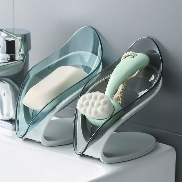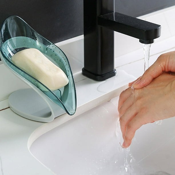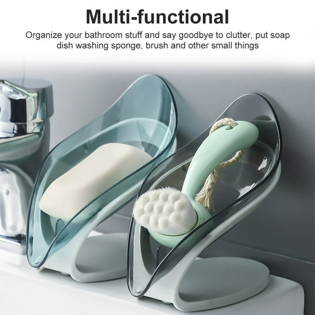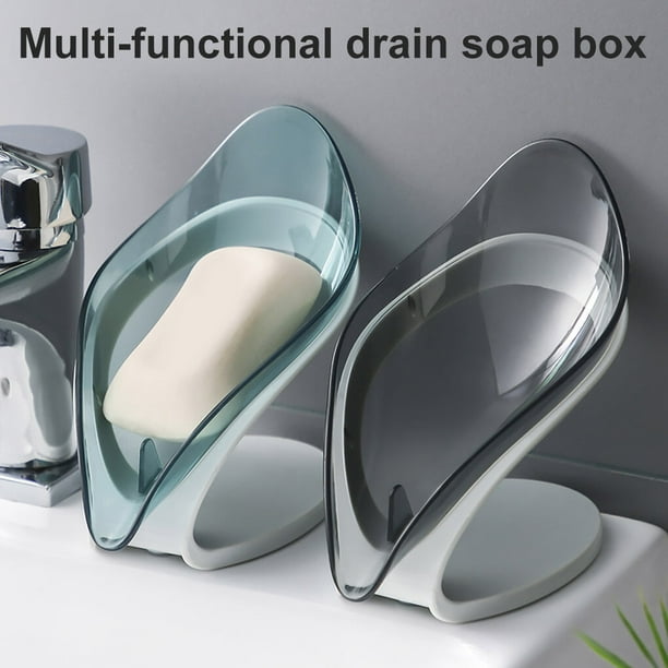 TureClos Self Draining Soap Box No Punching Leaf Shape Dish Tray Decorative Soap Holder for Bathroom Kitchen, Grey