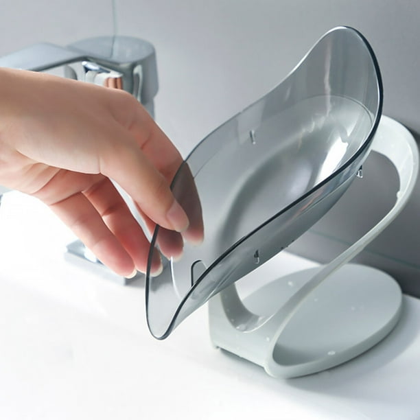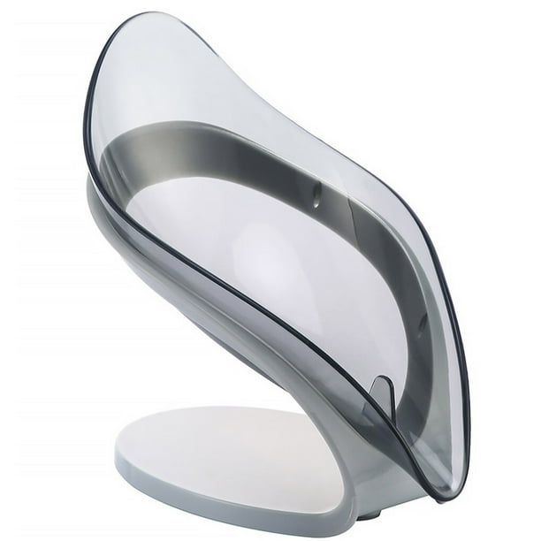 TureClos Self Draining Soap Box No Punching Leaf Shape Dish Tray Decorative Soap Holder for Bathroom Kitchen, Grey”