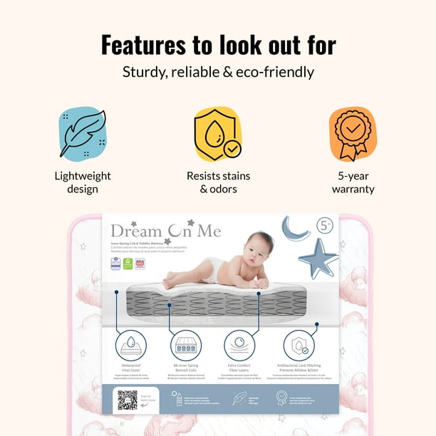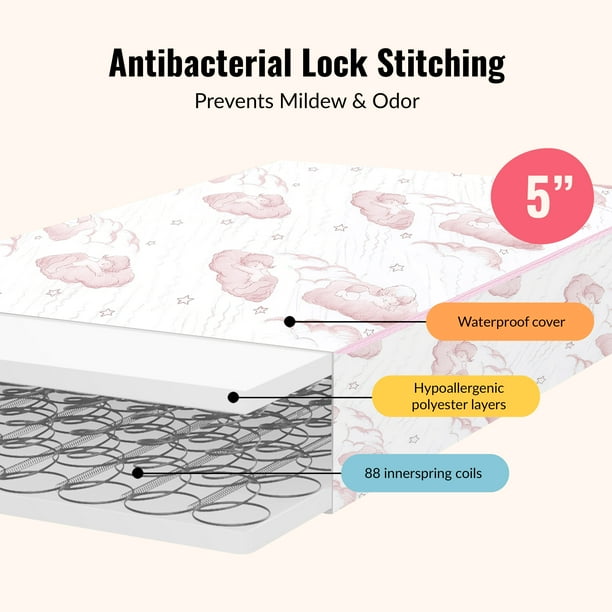 Twilight 80 Coil Spring Crib and Toddler Bed Mattress, Wave Pink, 5″
