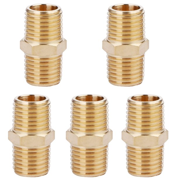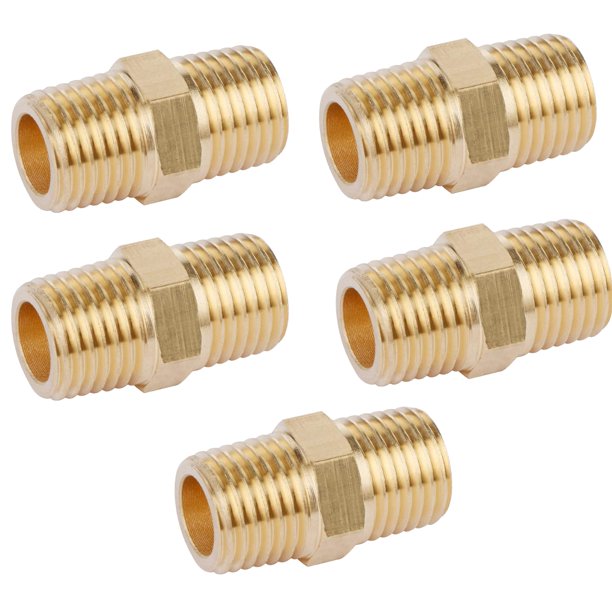 The Straight Hex Nipple fitting, with male threads on both ends and a hexagonal middle section, is used to connect two female fittings or components together in a straight line.