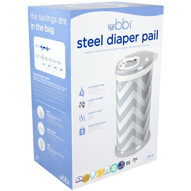 The award-winning Ubbi Diaper Pail has earned worldwide recognition for its superior odor control and convenience, representing a breakthrough in the diaper disposal market. The Ubbi Steel Diaper Pail is crafted from powder-coated steel and provides maximum odor control. It’s rubber seals are strategically placed to lock in odors, and the innovative sliding lid minimizes air disruption, ensuring that unpleasant smells remain contained within the pail. The optional childproof lock keeps little hands out. Catering to the needs of modern parents, our baby diaper pail is compatible with any standard trash bags saving parents money and time. Strategically designed to be the easiest disposal system to load, use, empty, and clean. Enter the world of Ubbi where innovative products are designed and created with parents and children in mind. A wide range of Ubbi branded products is now available for today’s modern parents that are looking for stylish and functional baby essentials. Do not clean with any harsh abrasives or liquids – even water! Wipe clean with a dry cloth to prevent rust. No special bags needed. Dimensions: 19.5” H x 8.4” W x 11.4” D. Opening Size: 5 inches diameter. Holds up to 55 newborn sized diapers.