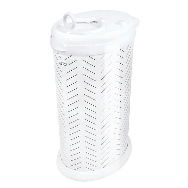 Ubbi Stainless Steel Diaper Pail, Odor Locking, No Special Bag Required, Award-Winning, Registry Must-Have, White Herringbone, Toodler, Newborn