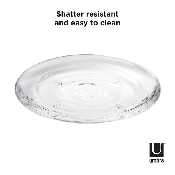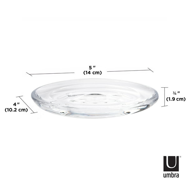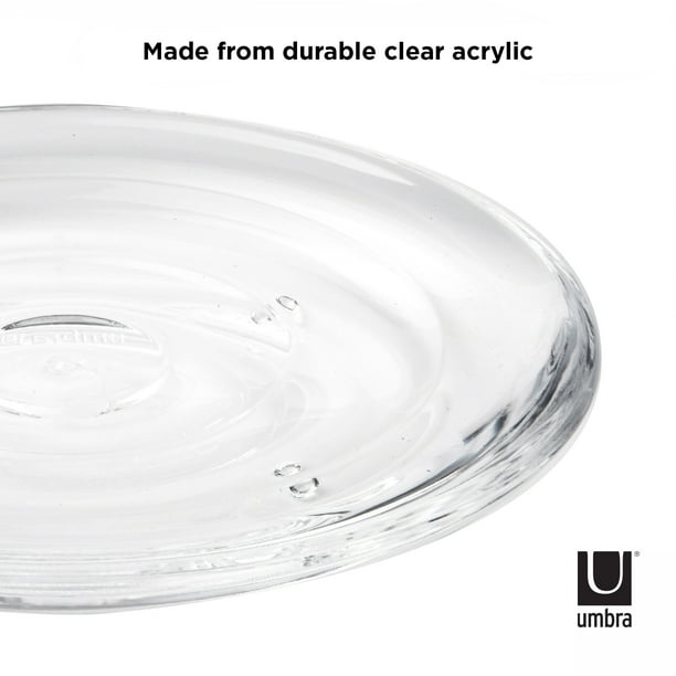 Droplet Soap Dish is part of Umbra’s Droplet collection, a series of bathroom décor items replicating a drop of pure water, through shape and transparency. Made of durable, strong acrylic, Droplet gives off the illusion of delicate glass, but is practical and breakage-resistant. Droplet’s smooth wave-like ridges keep the soap bar from sitting in a pool of water and disintegrating. This modern soap dish measures at 5.5 x 4 x 0.75 inch (14 x 10 x 2 cm) and is a clean, modern addition to any bathroom or kitchen. U.S. Patent No. D537,362