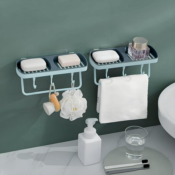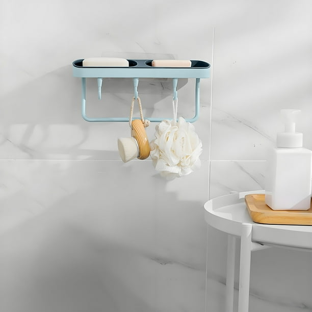 Vadktai Soap Dish 2-in-1 Soap Holder for Shower Wall with Hooks, Adhesive Shampoo Bar Soap Caddy Tray Saver Rest Case Sponge Holder Shower Dish Sink Soap Rack for Kitchen Bathroom