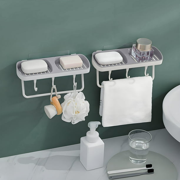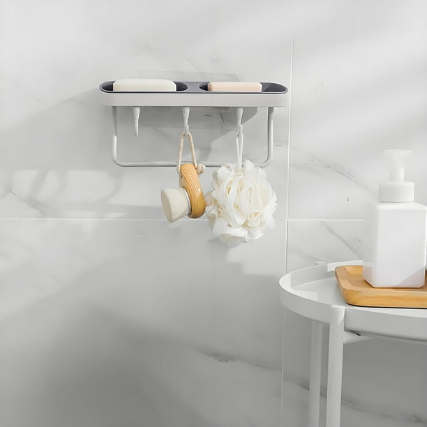 Vadktai Soap Dish 2-in-1 Soap Holder for Shower Wall with Hooks, Adhesive Shampoo Bar Soap Caddy Tray Saver Rest Case Sponge Holder Shower Dish Sink Soap Rack for Kitchen Bathroom