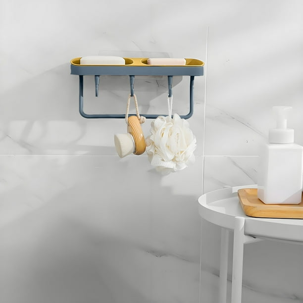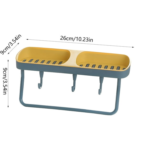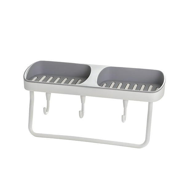 Vadktai Soap Dish 2-in-1 Soap Holder for Shower Wall with Hooks, Adhesive Shampoo Bar Soap Caddy Tray Saver Rest Case Sponge Holder Shower Dish Sink Soap Rack for Kitchen Bathroom