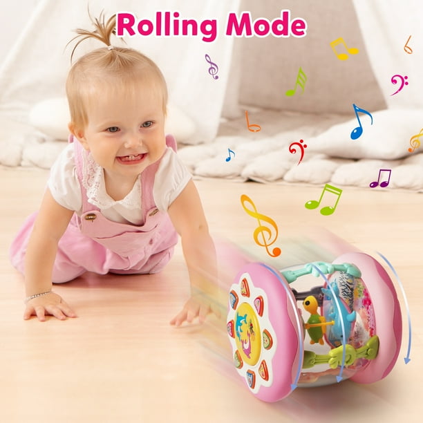 Vanmor Toys for 1 Year Old Baby Girls- Pink Musical Light Up Ocean Rotating Tummy Time Infant Learning Crawling Pink Toys Babies Boys 1 2 3 Year Old for Birthday Baby Gifts