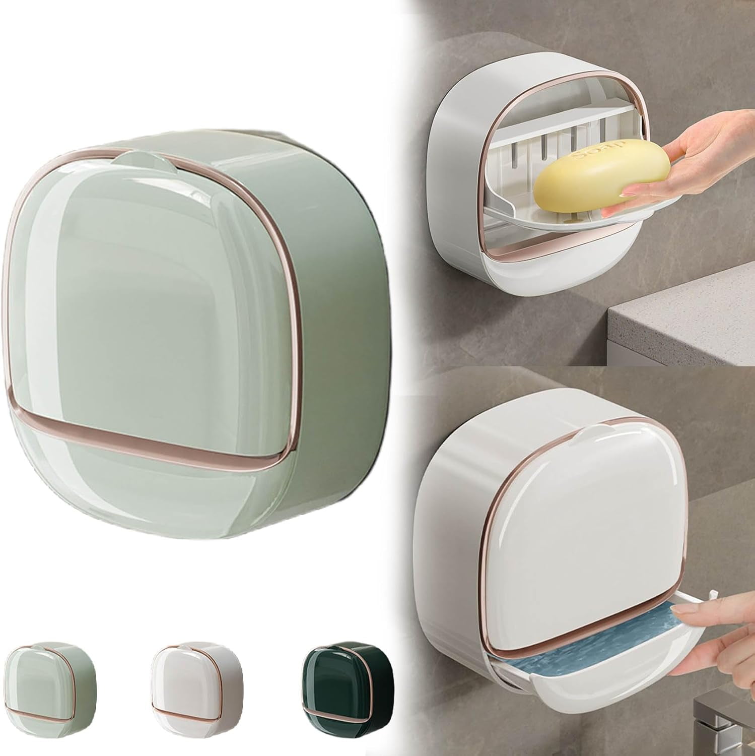 Waterproof Soap Dish with Drainage Box,2025 New Soap Dish Holder with Lid,Wall Mounted Drain Soap Box with Flip Lid,NO-Drilling Soap Dish Holder for Kitchen Sink,Bathroom,Bathtub