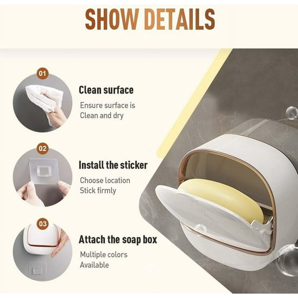 • 【Waterproof Soap Dish with Drainage Box】The wall-mounted soap box features an innovative flip-top design that is 360-degree waterproof and dustproof. The wide-angle flip cover provides easy access to the soap bar.