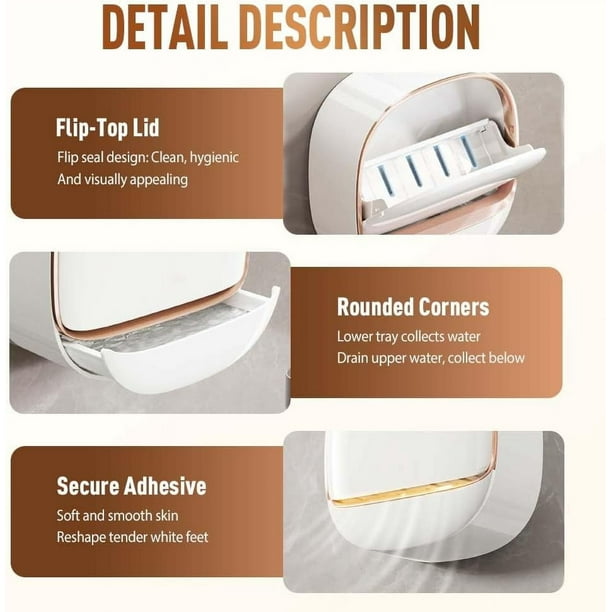 • 【Waterproof Soap Dish with Drainage Box】The wall-mounted soap box features an innovative flip-top design that is 360-degree waterproof and dustproof. The wide-angle flip cover provides easy access to the soap bar.