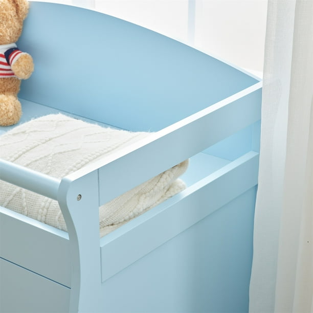 Zimtown Wood Changing Table with Drawers,Baby Dresser, Infant Diaper Station Nursery Organizer, Light Blue